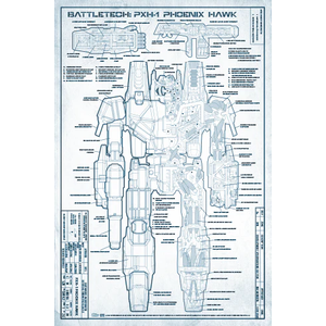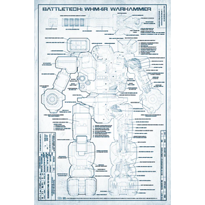 BattleTech Technical Blueprints contains four 24" x 36" BattleMech blueprints printed on rolled, heavy poster stock. Each drawing shows both the external armor and internal skeleton of the 'Mech, labeling everything from reactor core to the endo-encapsulated polystanchions.