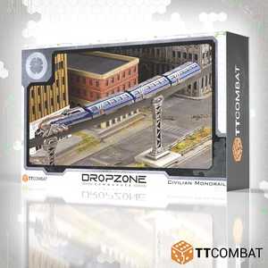 This is a great piece to expand your Dropzone Terrain. With dynamic posing due to a flexible track and columns, this Civilian Monorail can look excellent on your board riding high over ruined streets.