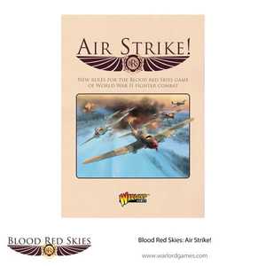 Blood Red Skies: Air Strike! is a rules compendium that presents all of the rules from the original Blood Red Skies starter set and adds many new ones suitable for expanded air operations: ground and sea targets, bombing, strafing and torpedo attacks, defensive flak and terrain. Jet aircraft are introduced with the MiG Alley expansion and there is additional guidance for historic and competitive play.