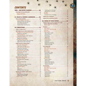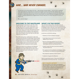 WHAT’S IN THE BOOK? This tome collects previously published additional material for Fallout: Factions, along with revised content from the Battle for Nuka-World starter set and brand-new ways to expand your fast-paced skirmish games.