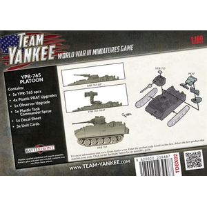 Includes five YPR-765 APCs, one observer upgrade, four plastic PRAT upgrades, one plastic Tank Commander sprue, one decal sheet and three Unit cards.
