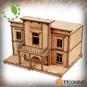 The Pitchstone Grand Hotel is made from 3mm MDF. It is a great scenery kit to use in Wild West skirmish games, and will work perfectly with 28-32mm games and miniatures.