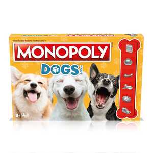 Dogs are a constant provider of love, loyalty, and an unbreakable bond that lasts a lifetime. They have a sense of joy and fun that may be difficult to put into words — but that joy has finally been captured in this brand new Dogs edition of MONOPOLY. Featuring 22 of everyone's favourite four-legged friends of all shapes and sizes, from the "little dog who thinks he can", the Pomeranian, to the athletic and intelligent Siberian Husky, all the way to the playful, easy-going Labrador Retriever. Take turns choosing your favourite pups from around the board, like the Chihuahua, Shiba Inu and the Bulldog. Buying up kennels and family homes to charge your opponents more rent, and pick up Toys and Treats cards for unexpected prizes and penalties. Will you win big with your dog training business, or will you end up in jail for being a bad owner? Just watch out for those Dog Food and Dog Accessory fees! With plenty of perfect pups to choose from, it's time to roll the dice and try to win Dogs MONOPOLY!