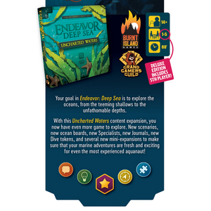 The Endeavor: Deep Sea – Uncharted Waters expansion pushes players to the edge with challenging new missions, undiscovered depths to explore, and new specialists looking to join your crew and make an impact on the world. Players also get to incorporate new mini-expansions tasking them with saving endangered aquatic wildlife, exploring deeper depths than ever possible, and restoring the fragile balance of the marine ecosystem.