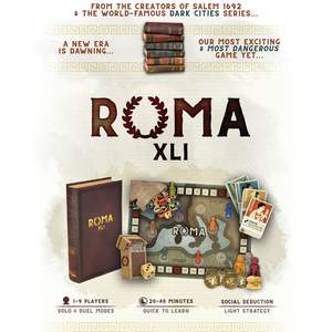 Deluxeutgåva av Roma XLI, sjätte spelet i Facade Games Dark City-serie. I paketet ingår även de två Kickstarterexklusiva expansionerna Spoils of War och Bounties of Peace.