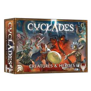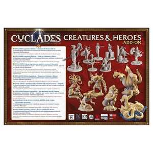 Plastminatyrer av hjältarna och varelserna för att ersätta kartongfigurerna i grundspelet Cyclades: Legendary Edition.