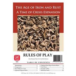 Time of Crisis is the game that allows 2-4 players to re-create the Roman Crisis of the Third Century, leading separate dynasties in a struggle for control of an empire beset by threats both internal and external. The Age of Iron and Rust provides new choices for players to build their influence, exert their Imperial power, and even play alone!