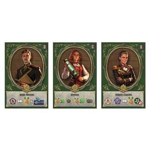 Varje patron-kort hör till en specifik experimentbräde. I grundspelet skiljs dessa experiment endast åt med bokstäver. Nu kan du på varje patron-kort se yrket för den patron som är kopplad till det specifika experimentet, tillsammans med en beskrivning och en illustration av dem.
