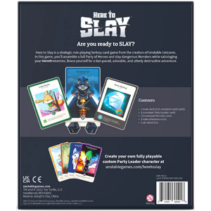 Here to Slay is a competitive role-playing fantasy strategy card game that's all about assembling a party of Heroes and slaying monsters (and sometimes sabotaging your friends too) from the creators of Unstable Unicorns.