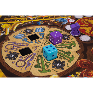 Jazzinspirerat eurospel med rondellmekanik och tärningar.