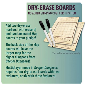 Två laminerade kartor och två whiteboardpennor till Lairs. Lätt att torka av efter varje spelomgång. Dessa ersätter pappersarken som ingår i originalutgåvan.