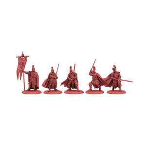 The Red Cloaks unit box for the A Song of Ice and Fire: Tabletop Miniatures Game gives House Lannister players a new medium infantry unit for their force. The Red Cloaks are armored in half-plate, the best that money can buy for mass production. This gives them a modicum of defense, able to turn away blows from all but the strongest enemy soldiers. Being paid well also serves them on the battlefield, as they know they don’t want to lose that next paycheck.