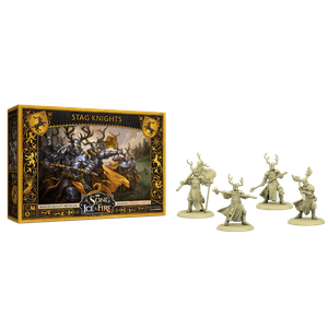 The Stag Knights unit box for the A Song of Ice and Fire: Tabletop Miniatures Game gives House Baratheon commanders a strong, tough, elite unit for their forces. Clad in heavy armor, letting them take a significant blow from the enemy and coming out fine, as the unit does take damage, it only grows stronger. As ranks are destroyed, the unit gains access to several special abilities, each one as deadly as the last.