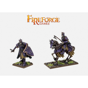 This pack contains 2 Leader (mounted and on foot version) , 1 barded horse, 3 head options (for each model), 4 weapon options, 1 25mm x 50mm plastic base and 1 20mm x 20 mm plastic base, 1 25mm round base and 1 60mm x 32mm oval base.