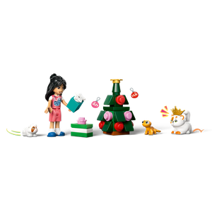 Varje figur har sin egen madrass, och varje husdjur har tillbehör som inspirerar till berättelser och roliga lekar. I setet ingår även en soffa, lampa, öppen spis, släde, fem julklappar och ett gulligt renmjukisdjur i LEGO® form.