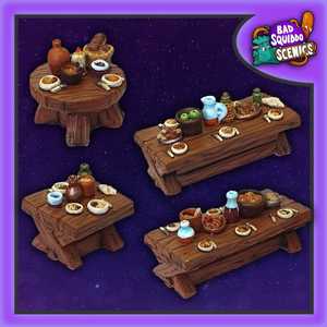4 pieces of unique hand sculpted dining tables. YES ALL THE FOOD AND TOPPINGS ARE INCLUDED! Wow! They are also one piece, so no glueing required, and they are SOLID. Time to get those adventurers nomming.