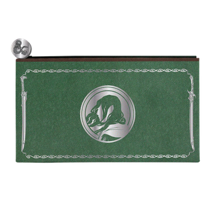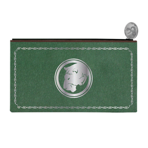 Need +5 to dice and pencil hoarding? We have got you covered with this premium pencil and dice bag for Dungeons & Dragons! Each dice bag features original Deven Rue map of the Forgotten Realms artwork on a soft light gray faux canvas on the interior and a Sage Green and Brown leatherette exterior. With a supple outer leatherette, soft inner faux canvas lining, and stunning silver metal and foil accents, this premium pencil and dice bag can securely store and protect up to 50 standard sized dice or close to 20 pens and pencils with a zippered closure. A D-Ring attachment makes it extra handy to clip on and is the perfect on-the-go accessory for any RPG adventurer or dice enthusiast!