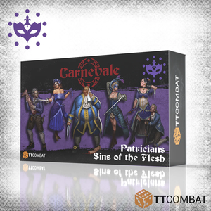 A Submissive Noble clings to the leg of his mistress, a particular kind of Cortigiane that whips those around her into shape. Two Cortigiane’s round out this box, these companions will follow their noble patrons into combat, deftly striking down foes with their Rapiers, assuming the coin is right.