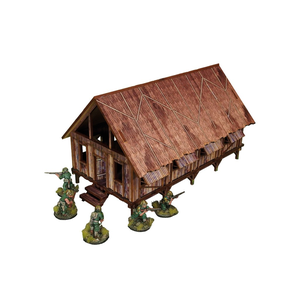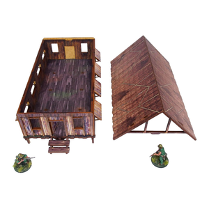 Multicolor prepainted (UV-printed) WW2 Pacific Jungle Barracks (1) is a simple thatched roof building mounted on stilts, pefect to represent common South East Asia and Oceania architecture of 20th century.