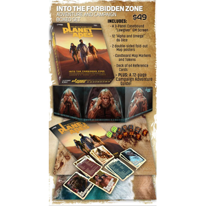 This lavish adventure set lets you assume the starring roles in a campaign that will take you on a trek through the Forbidden Zone and beyond. Cross the great desert, make for the jungles beyond, and you may just understand why the Lawgiver’s scarecrows warn you to never step foot into the Forbidden Zone!
