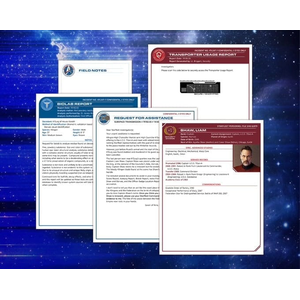 Murder on the Titan-A is a murder mystery that plays out in three stages and utilizes plenty of written dossiers, witness statements, and reports. In addition, it utilizes a fun augmented reality experience through the Pinfinity App. Once you scan your Starfleet Command badge, you'll be able to use the menu to submit your evidence to Captain Shaw for each stage, obtain hints, and even play fun quotes from Picard through the game. You'll also use the App to scan certain printed documents to pull up electronic reports you'll need to solve the murder.