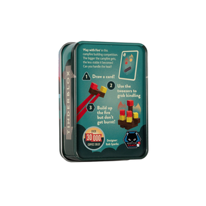 Each turn, players draw a card from the campfire deck. The card instructs them to place on the campfire a log, a fire block, or any combination of the two (or more) in various orientations. Players use tweezers to "play with fire", and if you drop anything, you're considered a fire hazard and removed from the game. The player who is the most careful with fire wins!