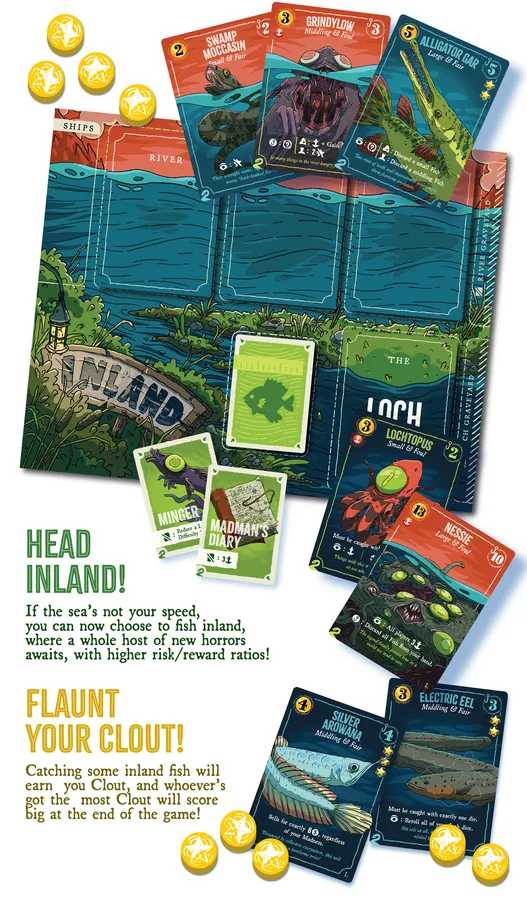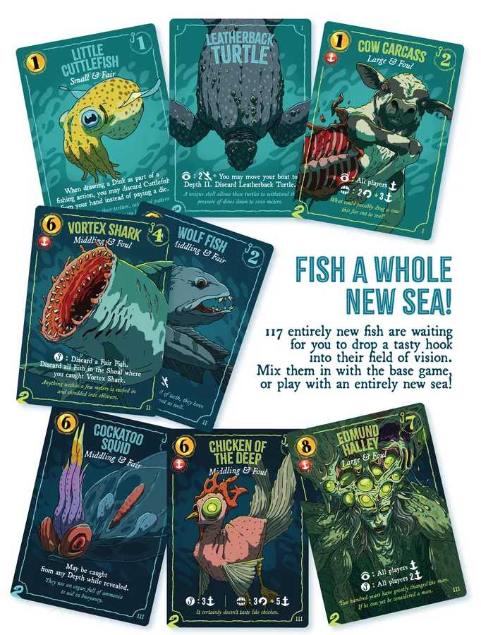 Du kan också fiska i ett helt nytt hav fullt av fisk, med 117 nya fiskar att upptäcka. Blanda dem med fiskarna från grundspelet eller spela endast med expansionens fiskar – det är upp till dig!