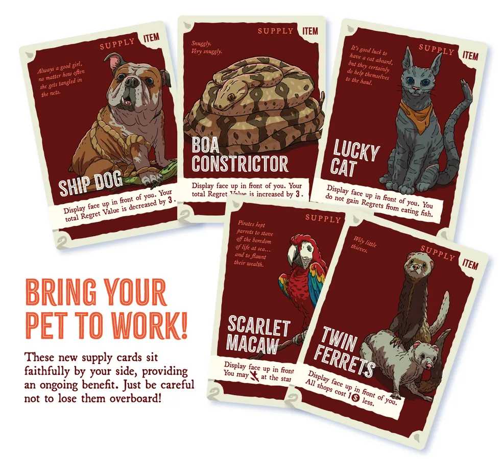 Nya föremål och utrustning finns också tillgängliga, inklusive en ny typ av förnödenhet: husdjur! Husdjur sitter troget vid din sida och ger en konstant fördel – men de kan fortfarande gå förlorade till havs, så försök att inte fästa dig för mycket vid dem.