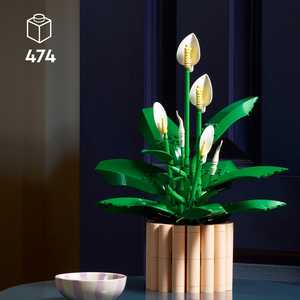 Känn din kreativitet blomma ut när du bygger en elegant LEGO Fredslilja, med liljor i 3 olika livsstadier: upptäck 2 hoprullade knoppar, 2 delvis utslagna blommor och 2 i full blom. Beundra de naturtrogna LEGO blommorna innan du upptäcker roliga detaljer, som en morot i ny färg som bildar kolven på den halvt utslagna liljan och en popcorndel i toppen av kolven på den fullt utslagna liljan. LEGO fredsliljan visas i en persikofärgad blomkruka och blir en vacker blomsterprydnad som skänker en aning lugn till vilket rum som helst.