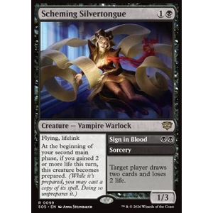 Magic löskort: Secrets of Strixhaven: Scheming Silvertongue // Sign in Blood
