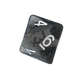 Tärning i genomskinlig akrylplast med siffror.