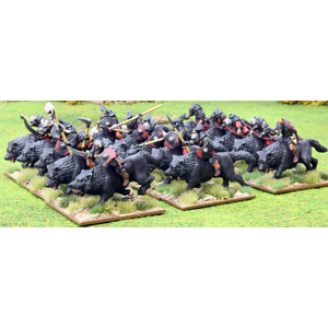 Plastic 28mm sized Goblin Wolf Riders, designed to be used in the game Oathmark: Battles of the Lost Age.