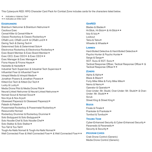 Cyberpunk Red: Combat Zone RPG Character Card Pack