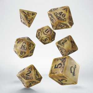 Q WORKSHOP and Paizo proudly present an official 7-piece dice set, simple and elegant as the remastered Pathfinder Second Edition game. Not bound by a specific campaign, they can fit any game you want! The dice background is gold as the treasures of the lost continent of Azlant, and the legible digits are painted black as the depths they’re in. The Pathfinder logo adorns the highest faces.
