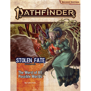 The Worst of All Possible Worlds is a Pathfinder adventure for four 18th-level characters. This adventure concludes the Stolen Fate Adventure Path, a three-part monthly campaign in which a band of adventurers are thrust into the role of the defenders of destiny itself. This adventure also includes new magical items and treasures to be discovered, including the final 18 powerful cards from the Deck of Destiny, and several brand new monsters to test even the mightiest of heroes.