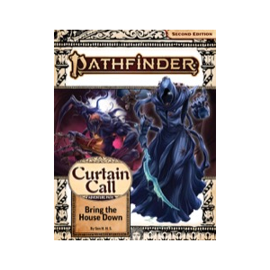 Bring the House Down is a Pathfinder adventure for four 18th-level characters. This adventure concludes the Curtain Call Adventure Path, a three-part monthly campaign in which a group of adventurers help to produce an opera based on their own prior adventures while simultaneously facing a new threat that only the most powerful of heroes can stop. This adventure also reveals long-standing truths about one of Pathfinder's most secretive and mysterious gods, powerful magical items and artifacts to discover, and several strange and devastating new monsters fit to challenge the game's most powerful heroes!