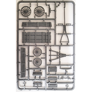 The wagon may be modelled with canvas, with hoops, or without either. It is also be available as a single frame with just the wagon - no cover, no hoops, no crew, no horses - so that you can have unhitched wagons.