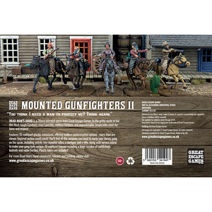 The mounted set may be made to mirror the Gunfighters II: The Ladies plastic set on foot. 50mm x 25mm oval plastic bases included.