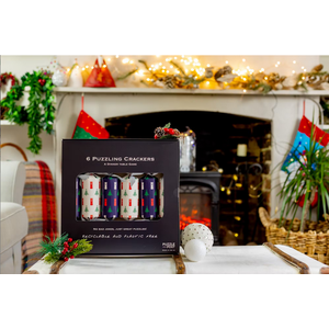Each cracker contains one puzzle, and then once you have solved all 6 puzzles there is one bonus puzzle to solve all together.