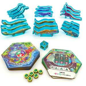 This expansion comes with 6 new dinosaurs species (18 meeples and 6 tiles total!) that add some aquatic variety to your games! All dinos will have heat transfer artwork on both sides of the blue translucent plastic meeple. Which of the dinos is your favorite: Dunkleosteus, Elasmosaurus, Kronosaurus, Mosasaurus, Plesiosasurus, or Plotosaurus?