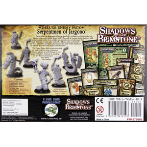 The Shadows of Brimstone: Serpentmen of Jargono expansion adds the Serpentmen Warriors (6) and a Serpentman Shaman (1) as Enemies along with threat cards for both the Swamps of Jargono and the Mines.