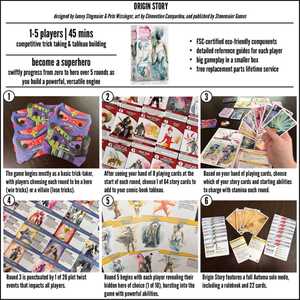 Origin Story requires minimal tabletop space and is colorblind friendly. It is language dependent.