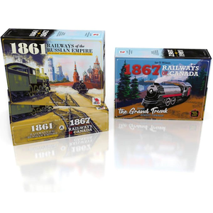 In 2005, Ian D. Wilson released 1861: Railways of the Russian Empire inspired by the railway development of Russia. In 2015, he released 1867: Railways of Canada, which is a standalone game that uses 1861's core rules on a different map with a handful of variations to gameplay. Both are classic examples of the versatile 18xx system of train games. They are straightforward enough to be your 1st 18xx game while still offering the depth you want in your 100th game.
