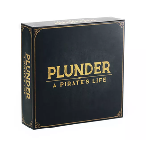 Plunder: A Pirate's Life is a competitive, strategy-based gateway game played on a modular ocean map. The goal is to gain ten Plunder Points. Plunder points are obtained by conquering islands, sinking enemy ships, and burying treasure. On your turn, draw one Resource card for each island you own. Trade and manage your resources (wood, iron, rum, gold) to build and upgrade your fleet using miniatures and pegs. Ships sail the open map via roll and move. Battle enemy ships and conquer islands via dice combat. Game also features team play.
