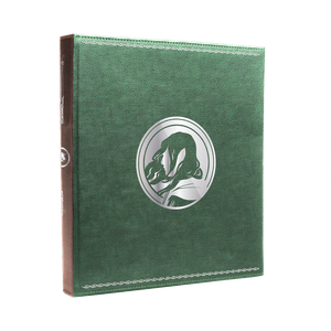 - Premium pebbled Sage Green and Brown leatherette exterior and soft suede interior with Forgotten Realms map