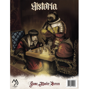 5th Edition Game Master Screen, designed for the Historia setting. The inside of the screen features: Quick Villains; 5th Edition features; Theri and Avians Instincts.