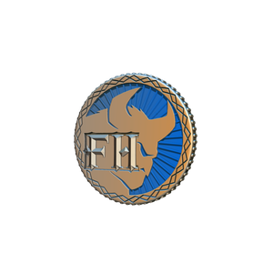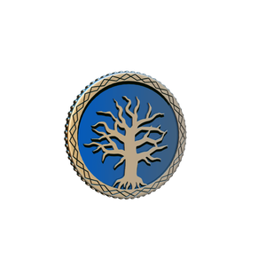 38mm metal coin with colored enamel highlights, featuring symbology and coloring from Frosthaven.