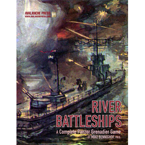 River Battleships is a complete game, with two 11x17-inch maps showing the beautiful blue Danube (or Dnepr, or Pripyet) in its full watery glory, a full set of Panzer Grenadier series game rules and charts, special rules for riverine combat, and sixteen new scenarios featuring river monitor action (plus one introductory scenario with just ground units).