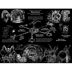 In Cave Evil, each player takes the role of an ancient Necromancer. Located deep within an earth, their Necropolises have now merged, each seeking the Darkest Pit, the location of all evil. The dark wizards must build minions with precious resources from their Lairs to send forth and destroy, or dig further tunnels to locate other creatures, resources or to ambush another sorcerer.