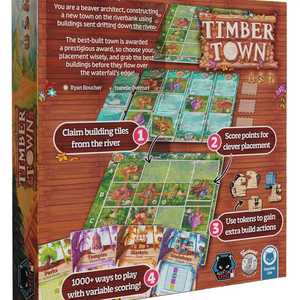 Timber Town is a "river drafting" game where players grab tiles from an ever changing board. Players place their tiles in their towns into the same column from which the tile was drafted from in an effort to match the objectives for that game.